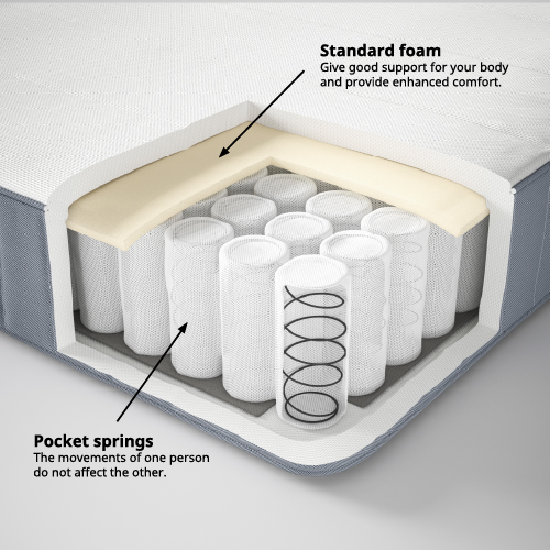 IKEA strictly controls the formaldehyde content, and insists that we don’t use chemical substances that are harmful to people and environment. We used a sleeping robot to imitate the human body and roll 50,000 times to test for durability. We provide 10-years guarantee for the quality of many mattresses.