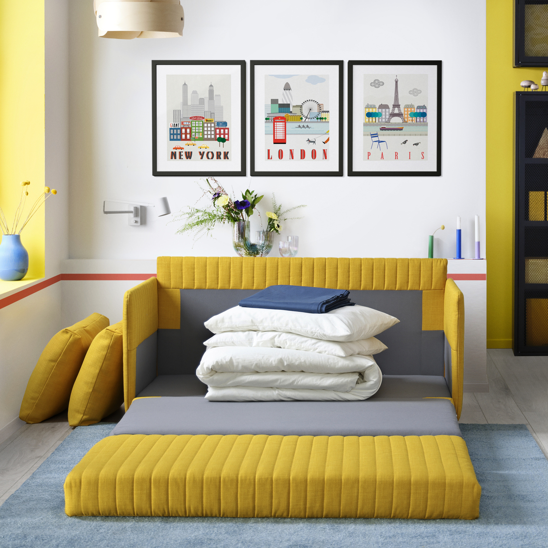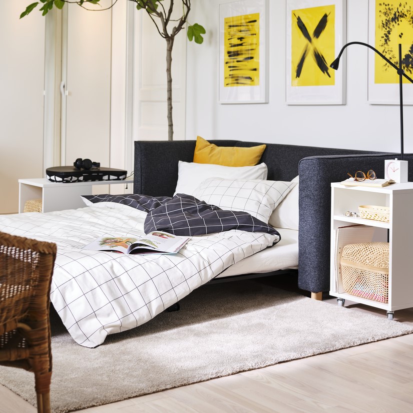 FRIDHULT sofa bed is designed to use as little space as possible, while maximising the sleeping surface. Perfect if you live in a small space and want to be able to easily transform your sofa into a bed.