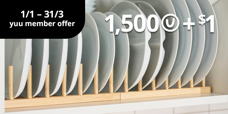 *The following products or services are not eligible to earn yuu Point at IKEA: All service charges, non IKEA brand Kitchen Appliance, IKEA Gift Card purchase and all purchases made for business use or by business customers.