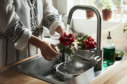 Experts say that less than 3% of the water on Earth is fresh water. We can all contribute to conserving this precious, shared resource. That’s why we offer kitchen and bathroom taps and shower heads that that reduce water consumption by up to 50%. Because every drop counts.