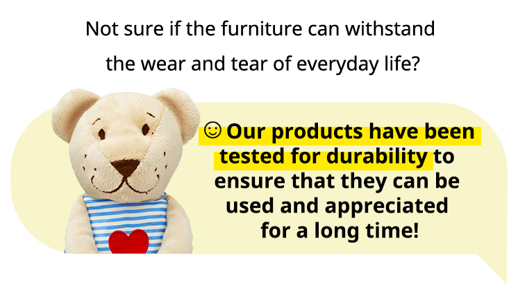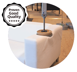 The seats and backs are pressed with the a weight of 100kg and 30kg for 50,000 times respectively as we want to make sure that the frames remain stable and the cushions stay resilient and comfortable every single day.