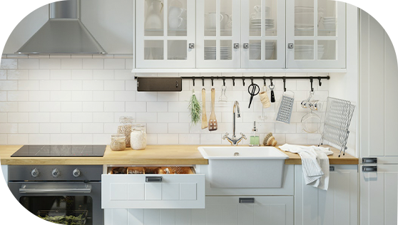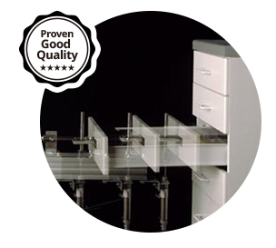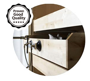 Durable hinges and robust drawer rails are essential for a durable kitchen cabinet! We use a machine toopen and close the doors and drawers 200,000 times and perform the loading test to ensure their sturdiness.