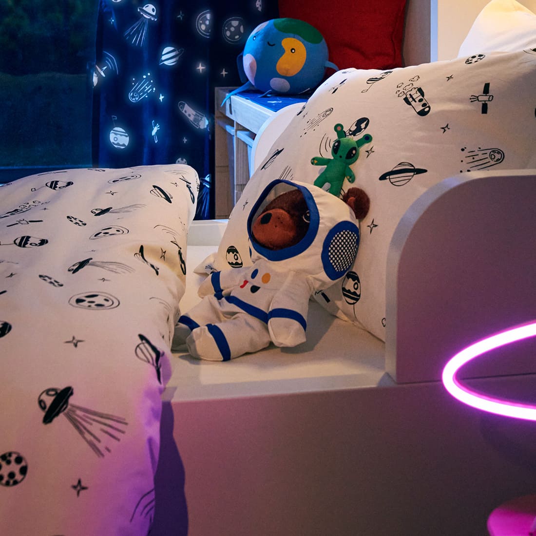 While it might be fun to have things hovering around in zero gravity, it’s hard to sort them out if they keep floating off at tidy-up time. Luckily, we have lots of easy children’s storage ideas like boxes and organisers to help tired young astronauts when play-time’s over. Gravity included!