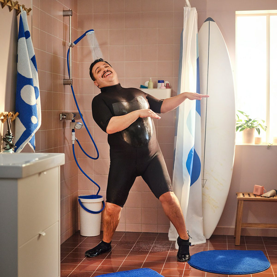 Now, it’s easy to save water that otherwise goes down the drain and use it for other things – like flushing the toilet, watering plants or cleaning. As you turn on the shower, BERGVATTNET diverter directs the cold water into the bucket and automatically switches to the hand shower when the water gets warm.