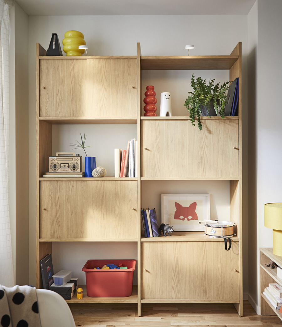 Thanks to its clever design and single-side-wall construction, LÅDMAKARE series adapts to your needs without wasting precious centimetres. The oak finish, tall