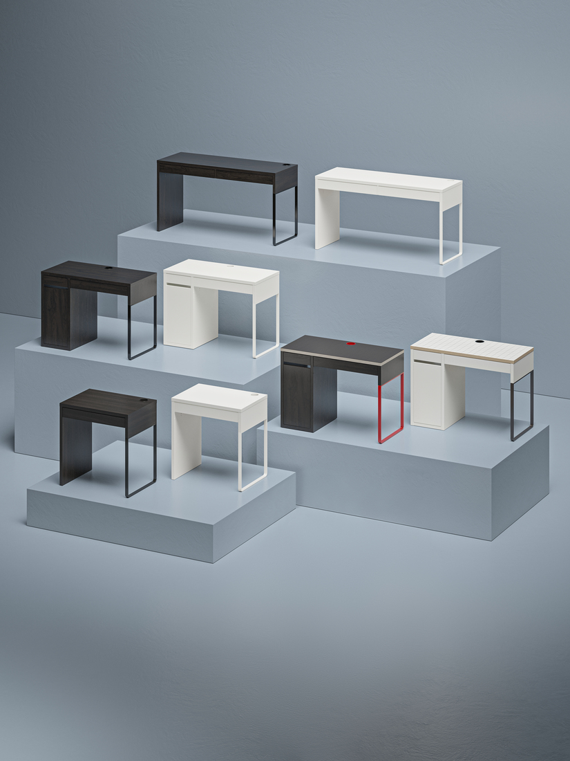 With its distinctive, streamlined design, the MICKE series of modern office furniture comes with a contemporary look and many different colours to choose from. Specially designed to fit small spaces, all the parts have the same height and depth so they’re easy to use together.