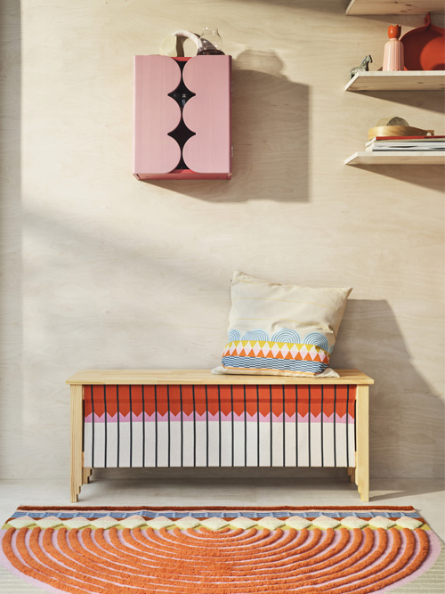 For people living in rural Sweden 200 years ago, all activities took place in one room. Today's tiny living may not be for the same reasons as then, but it calls for similar solutions. Inspired by Swedish folklore, OMMJÄNGE consists of flexible products from classic materials such as solid pine wood. wool, stoneware and mouth blown glass.