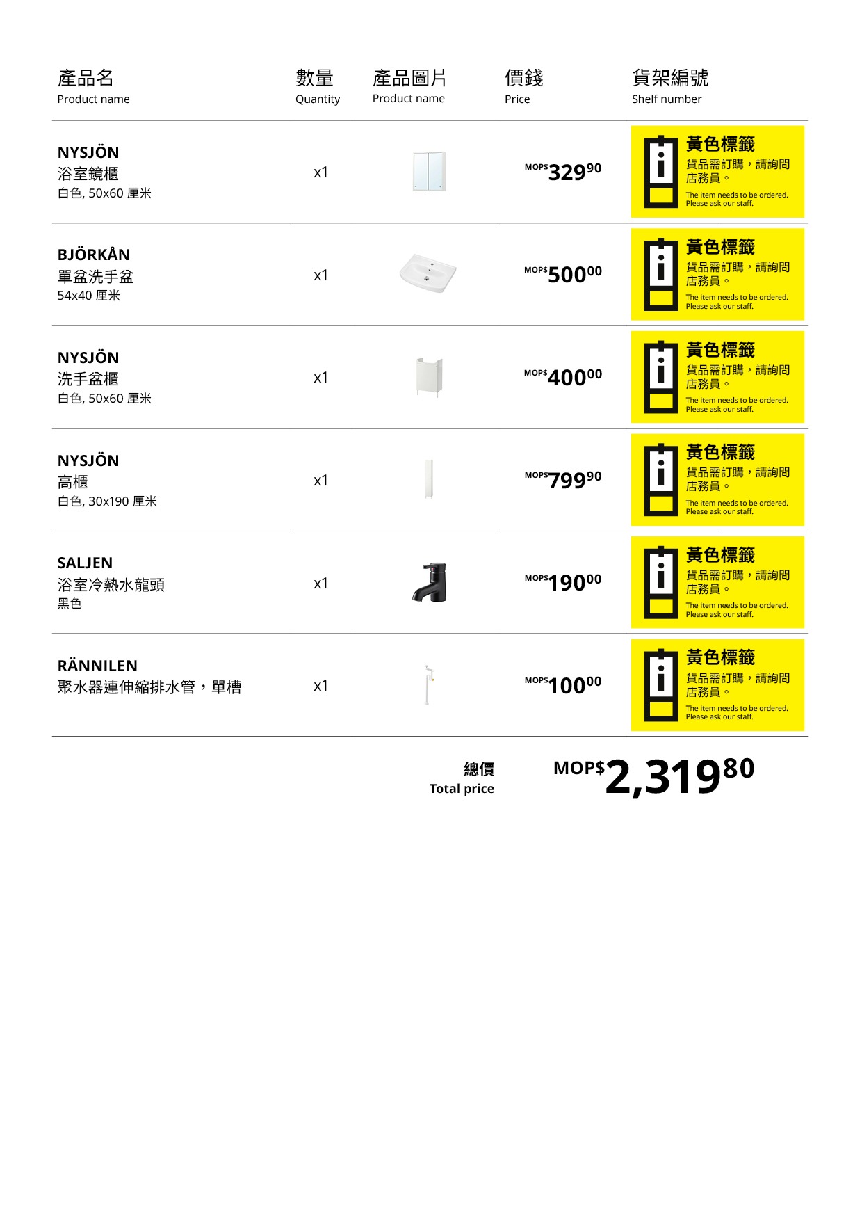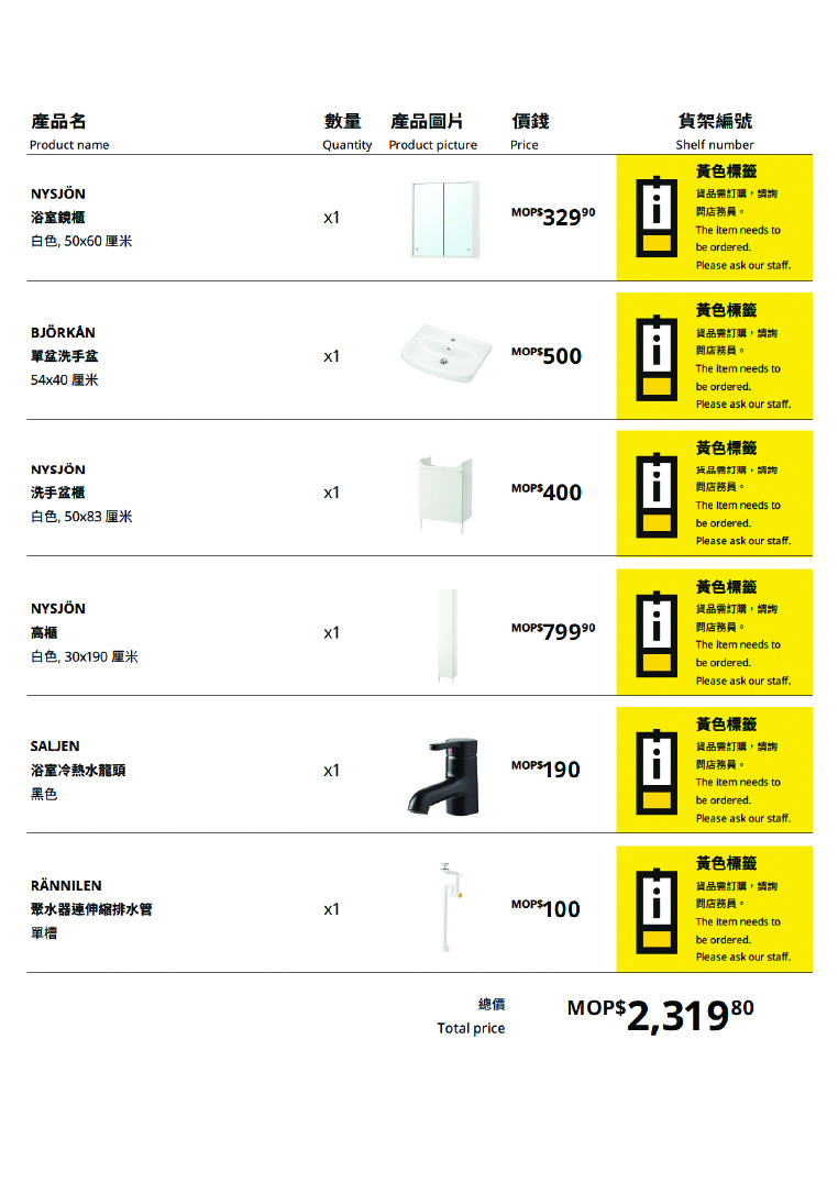 You have of all 8 possible products to compare.
