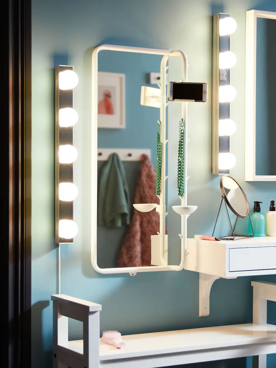 Lights like these provide an even light that has long been appreciated in beauty salons and dressing rooms around the world. These have been updated with low-energy LED lamps that last up to 25,000 hours.