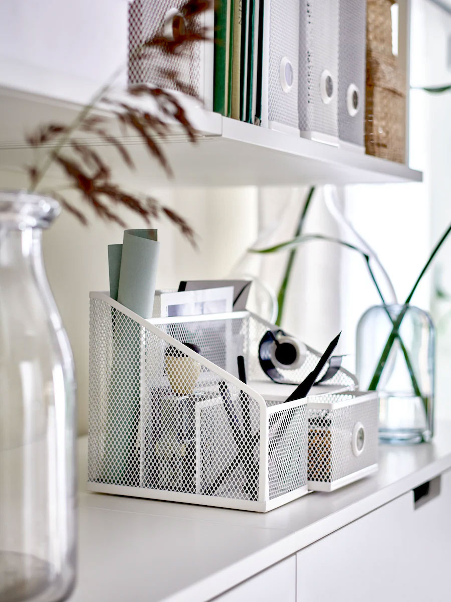 Keep a clean desk with your small office supplies in order. A classic desk organiser gets the job done and can be complemented with matching magazine files and letter trays.