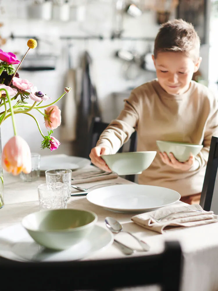 Setting the table may seem like a simple task, but it’s actually a learning opportunity. When kids set the table, they work with colours, counting, and concepts like symmetry and left and right. And then there’s the good feeling that comes with helping out. Just be sure to show your appreciation.