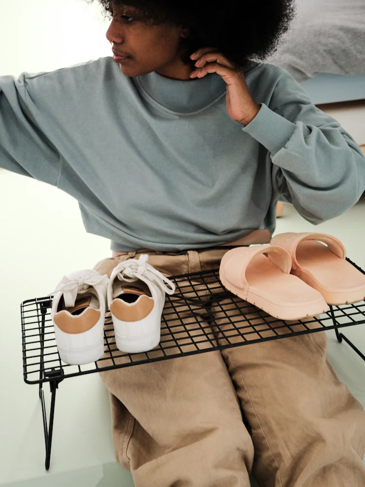 Shoes all over the floor make coming and going more difficult and dangerous. Stop your clogs from clogging up the space with this foldable, stackable shoe rack. It sets up in seconds and holds three pairs – or six, or nine. Tuck in three more underneath.