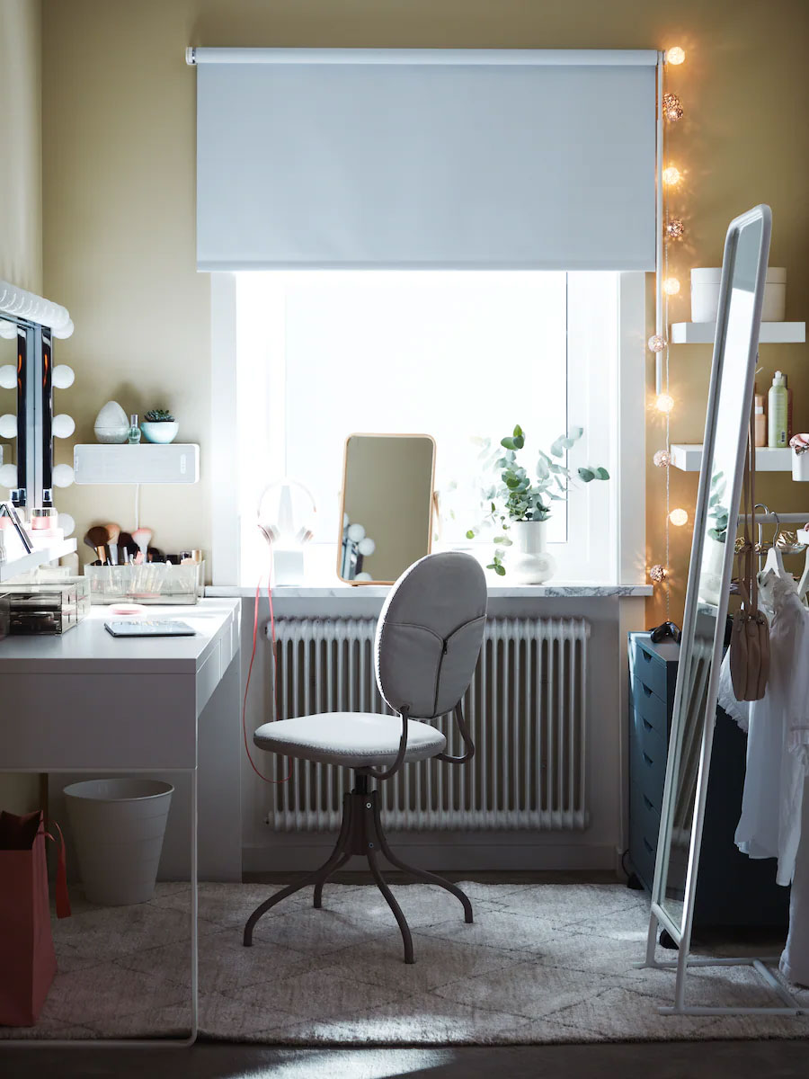 If you put together a vanity set-up as big as this, you will probably spend many hours here. So, don’t underestimate the importance of having a proper desk – and not least, a really comfortable chair.