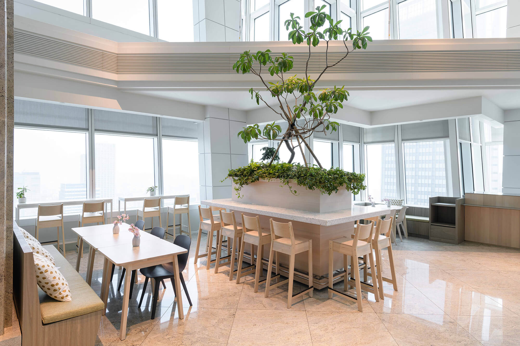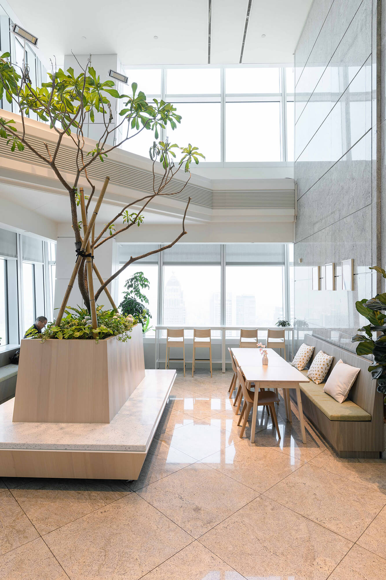 There are 13,000 tenants in this office building. In order to meet the needs of tenants in the building, the office building has created a vertical community called Sky Park, which has three categories: "spatial planning", "life functions" and "sustainable environment". It is a space exclusively for 35th floor tenants, providing services needed for rest and life.