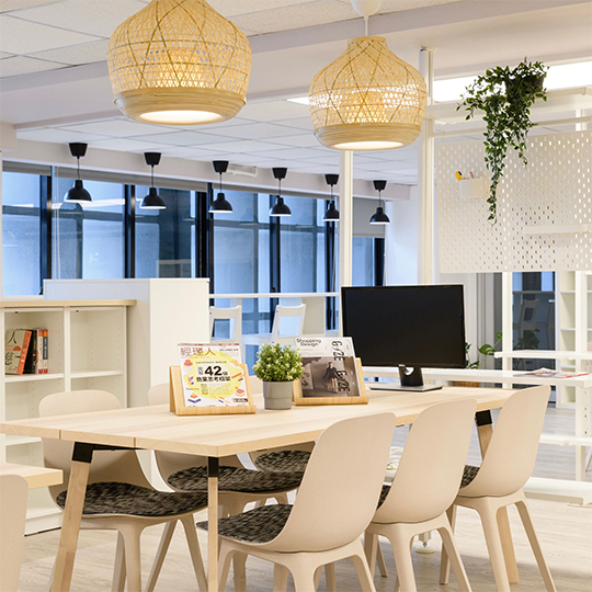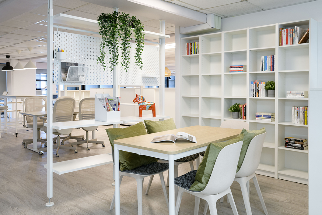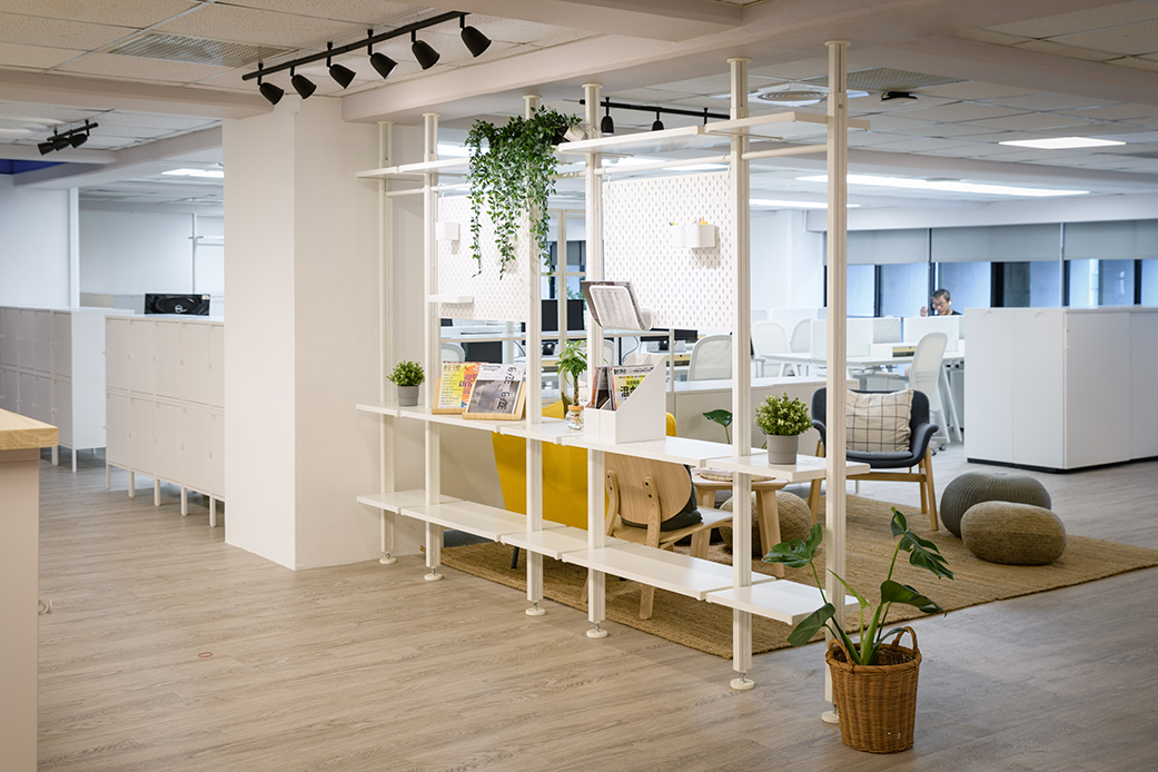 By collecting employees' expectations for the office, the space adopts a human-centered design with Nordic fashion to establish a simple and refreshing overall vision. In addition, according to the working style of post-epidemic, collaboration and meeting spaces are expanded to improve work efficiency; the seating area is designed by the window, which allows user to work independently without interference and enjoy a panoramic view of the urban landscape; the floor to ceiling storage not only can be a storage, display, and space divider, but also effectively organise wires. The open storage system is definitely an excellent choice to keep the space clean and tidy.