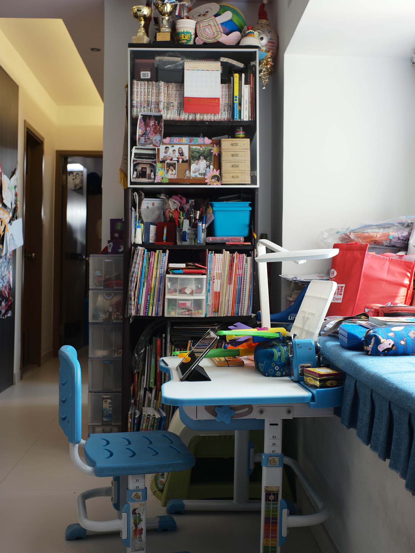 (1) The son thought his room looked like a storage room, and refused to sleep there; (2) he did not have a quiet place for learning, and had to do his homework by the window in the living room; (3) the family did not have a formal dining table, and usually had their meals at the coffee table. When friends visited, the kids had to play on the floor and eat at the coffee table and small desk