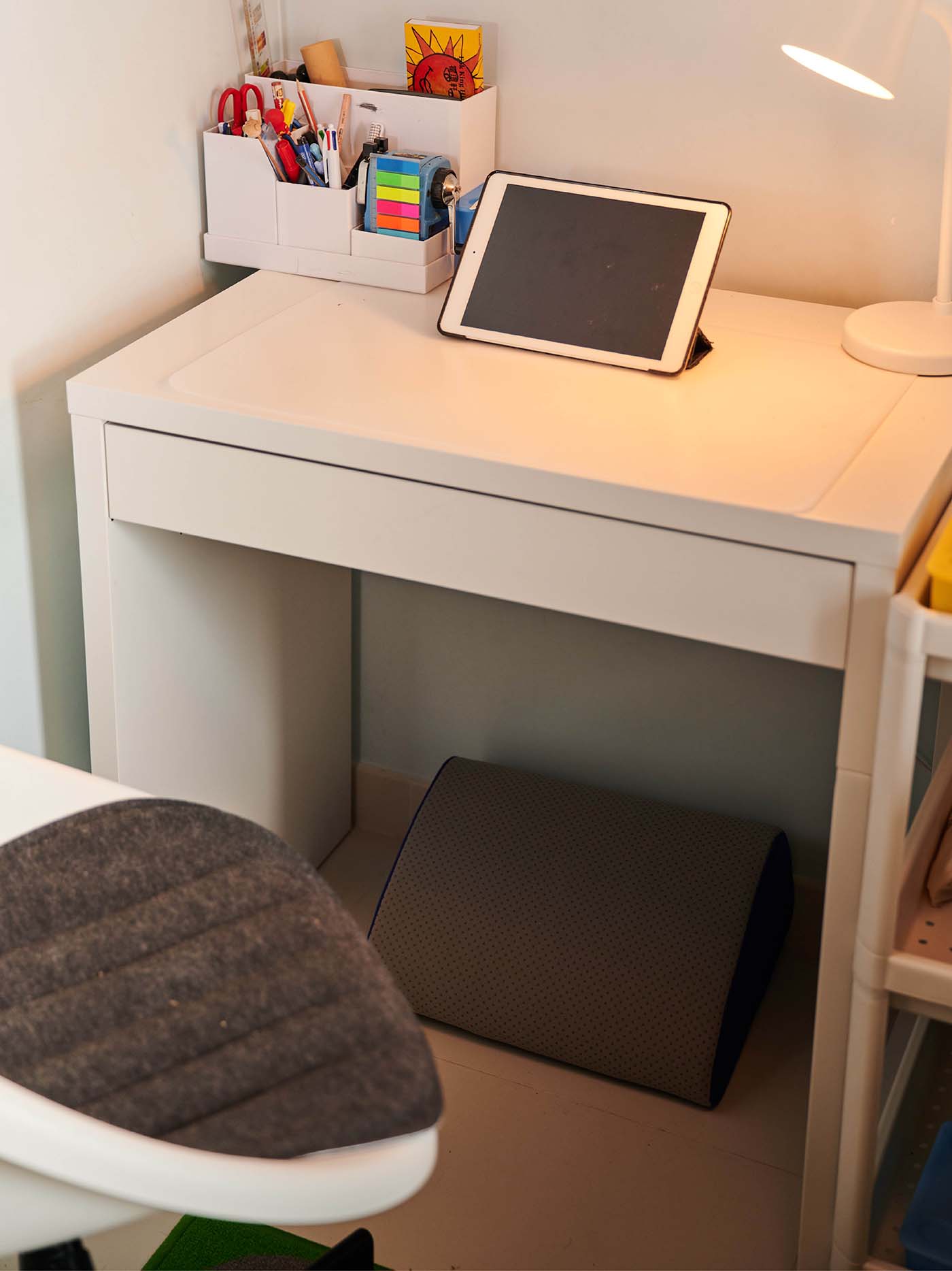 This large and flexible storage solution offers space for clothes, books and toys. The colourful doors also give the kid’s bedroom a fresh touch. The upper part keeps daddy’s items, and the lower part belongs to the little one, who now enjoys drawing on the doors with blackboard surface!