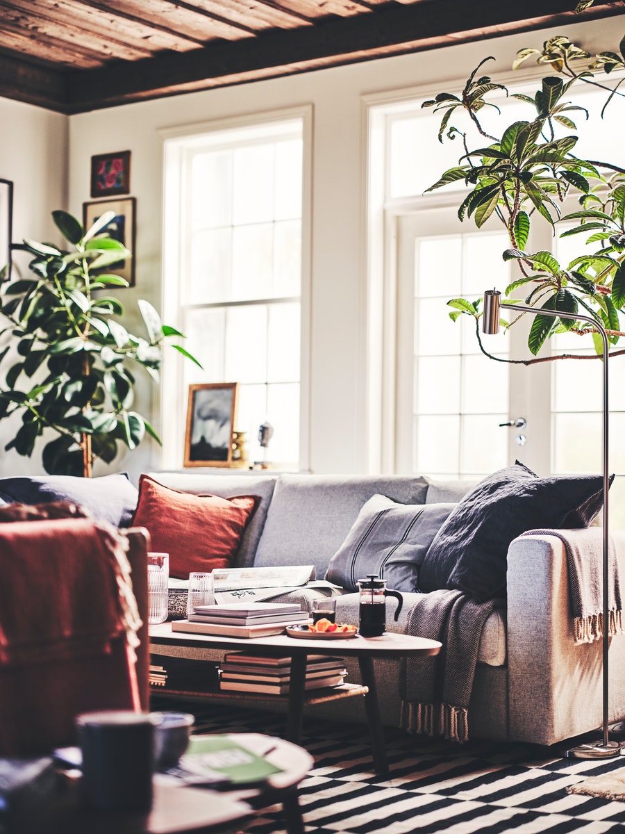 Large windows let in lots of natural light, keeping their indoor plants happy and giving the entire living room a warm and welcoming glow – perfect for an afternoon of quiet reading on the sofa alone, or a family boardgame battle around the coffee table.