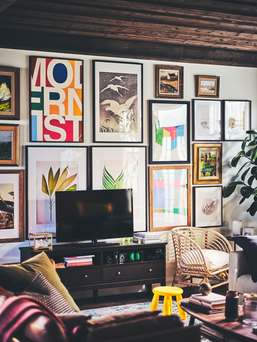 Both lovers of art, combining their collections was one of their favourite parts of creating a home together. In their living room, their gallery wall tells their story: two different halves that, when combined, have created a new, beautiful household.
