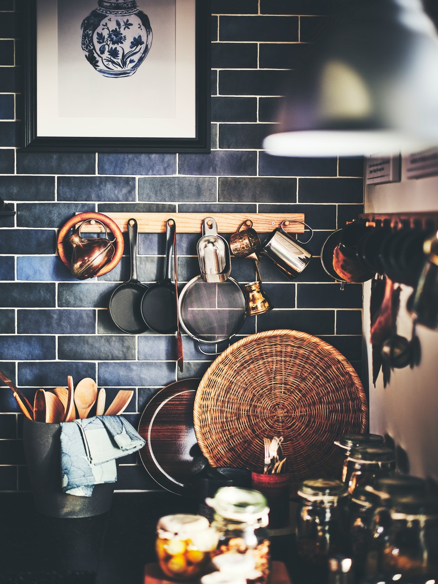 When house hunting, a spot with a generous kitchen was a must. Cupboards and drawers provide ample storage, but hooks and rails give their smaller pieces an easy to reach, attractive home. The older kids often help out, while kitchen trolleys filled with pens, paper and toys keep the toddlers entertained.