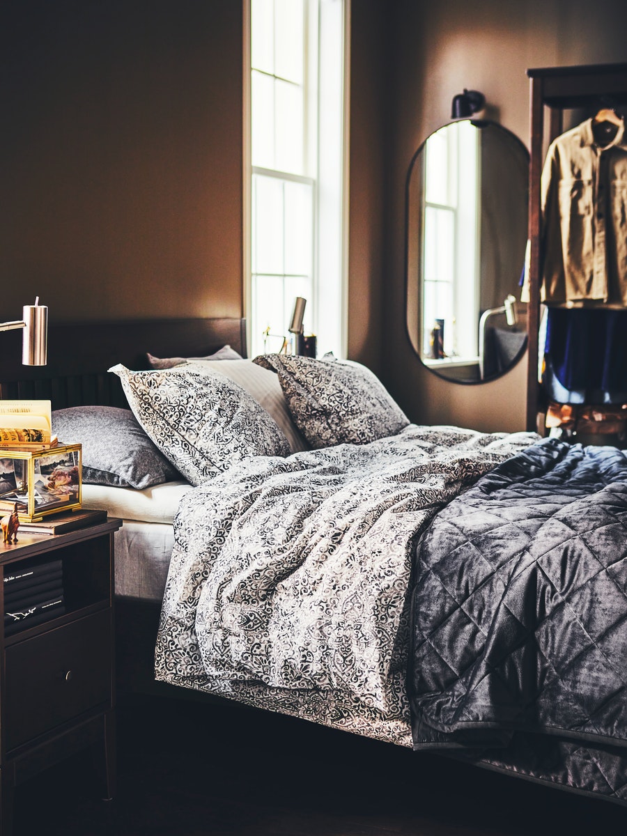 With so many different lives to think about and a home to run, these parents prioritise getting in proper sleep. Their bedroom’s dark colour palette makes for a calming, sleep-inducing space, and with their own desk and bathroom, they can get started on the day well before the rest of their household rises.