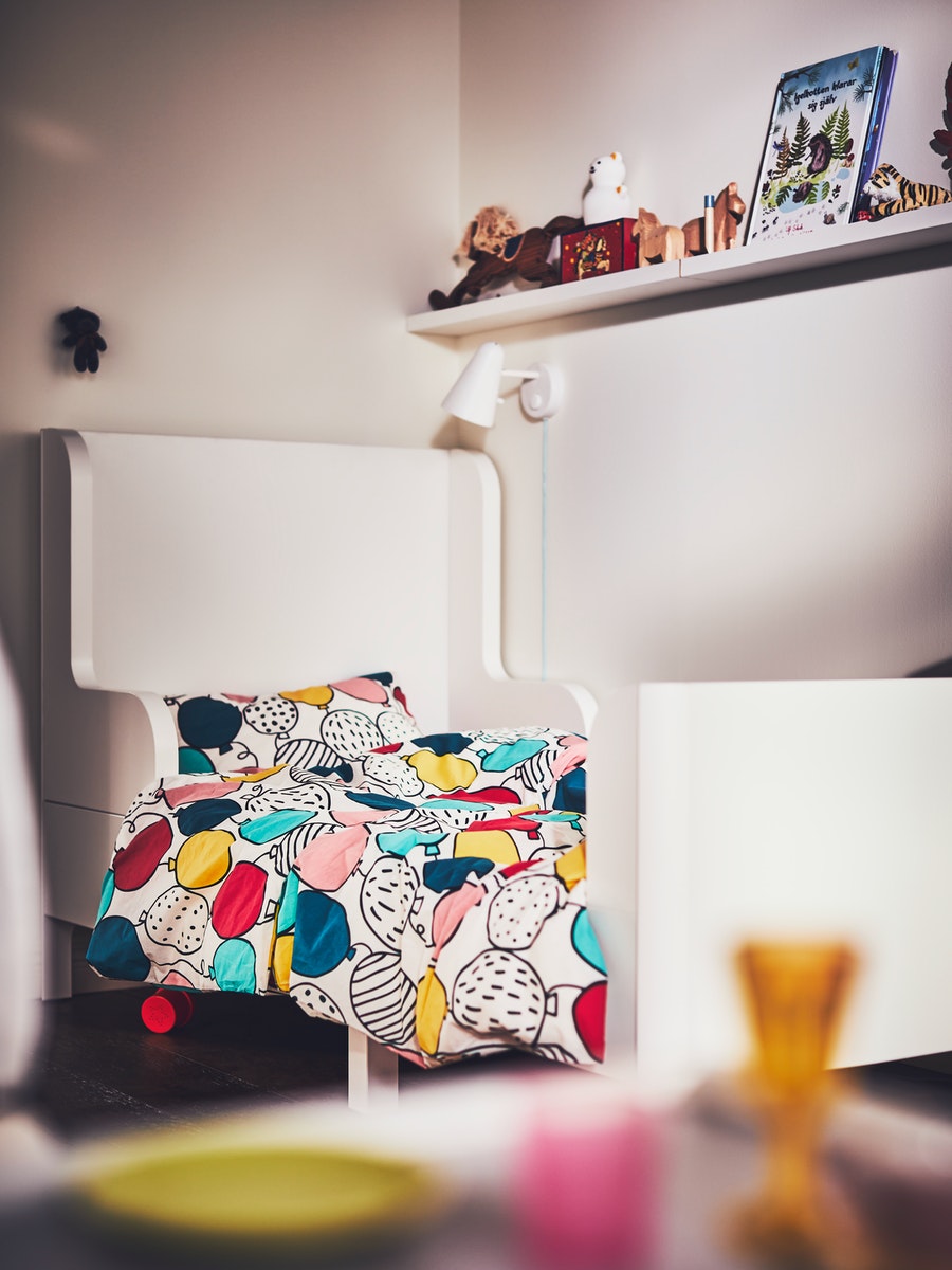 Their toddlers happily share a room – one in which they can each grow into for quite some time. Even though they may still be little, their personalities are reflected in their halves of the room, from the toys they play with to the bedding they sleep in.