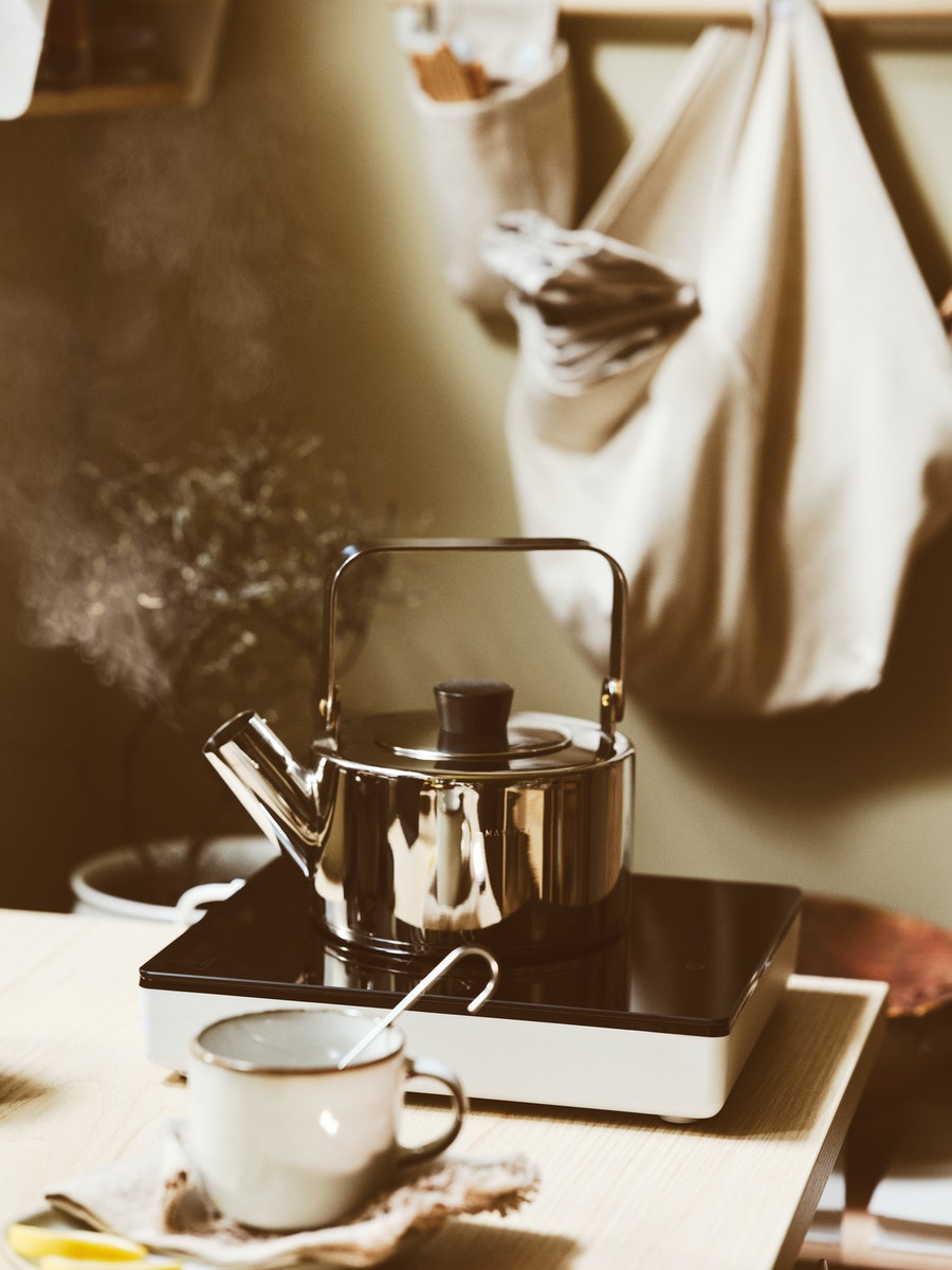 Their graphic sofa draws the right kind of attention, while still being a comfortable spot to sit and chat for hours on end. With everything in arms reach, from the next record to a delicious snack on the coffee table, it’s not surprising that afternoon tea often evolves into evening drinks.