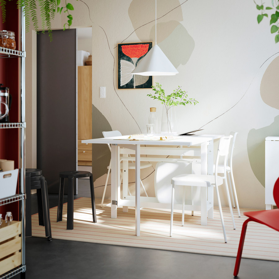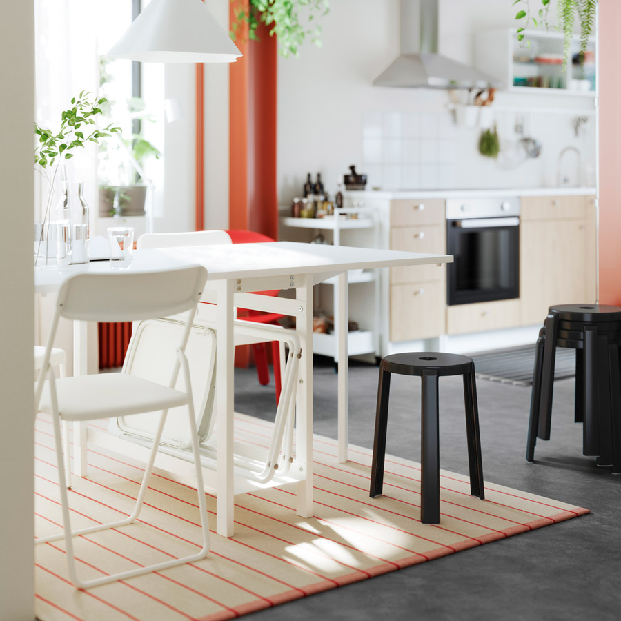 A quiet dinner for two? No problem. A spontaneous gathering that somehow turns into twelve? Also no problem. The VIHALS gateleg table expands in seconds, while stackable stools and folding chairs make seating as flexible as the plans. Need even more space? Just add another VIHALS table to instantly double the dining area – because the more, the merrier.