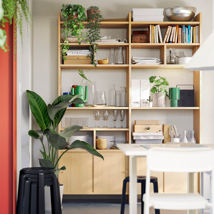 An organised space doesn’t have to mean hiding everything away. The LÅDMAKARE storage combination makes storage part of the room, keeping things accessible while creating a relaxed, effortless style. The open-back design keeps the space from feeling boxed in, so plates, glasses, and that one fancy serving dish (that never gets used) are always within sight.