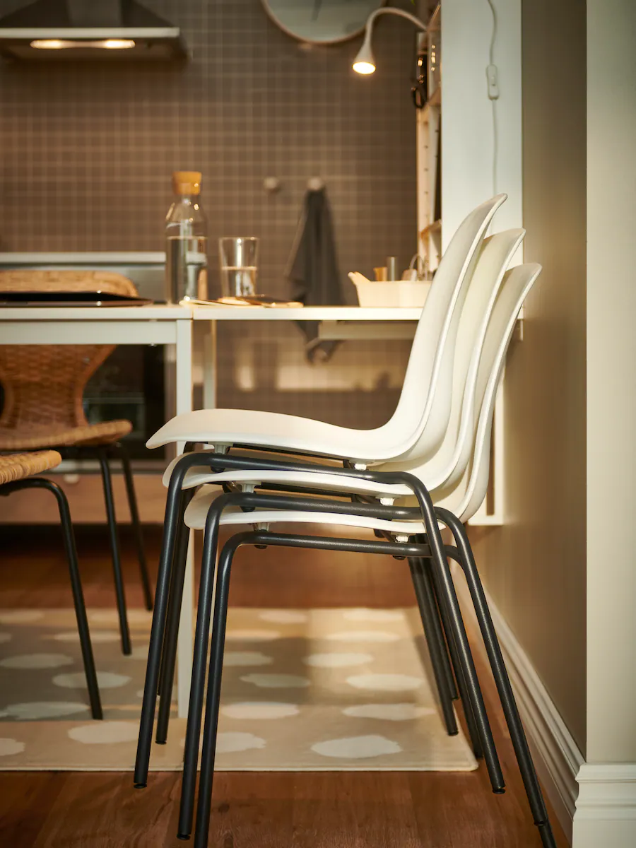 Style, comfort and versatility in one! Some extra chairs in white are easy to hide, yet add a nice contrast – and good lower-back support – when used. Also, you can combine different seats and underframes to tailor the right mix for your needs.