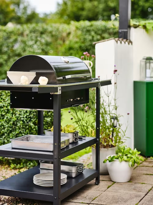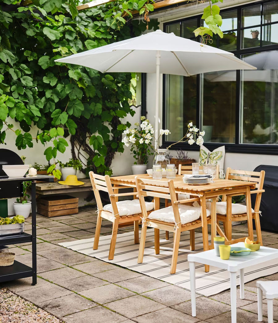 Celebrate the season by making your outdoor space comfortable, cosy and fun. The table and chairs with armrests in durable acacia support many activities, while the stylish parasol keeps you cool during the hottest hours. The spacious cabinets store everything you need to be creative, from pans to crayons.