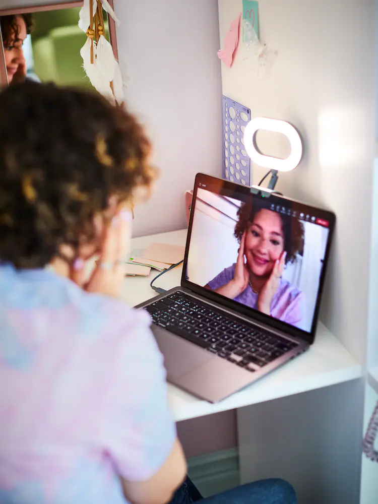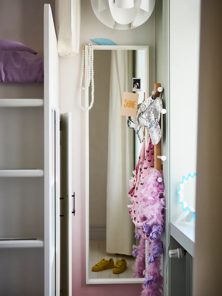 Useful helpers like a ring light, mirror, stand and cosy corners combined with the pastel wallpaper make for a versatile space that’s always screen-ready. It’s perfect for all kinds of looks and backgrounds – from fantasy and futuristic to poppy and retro.