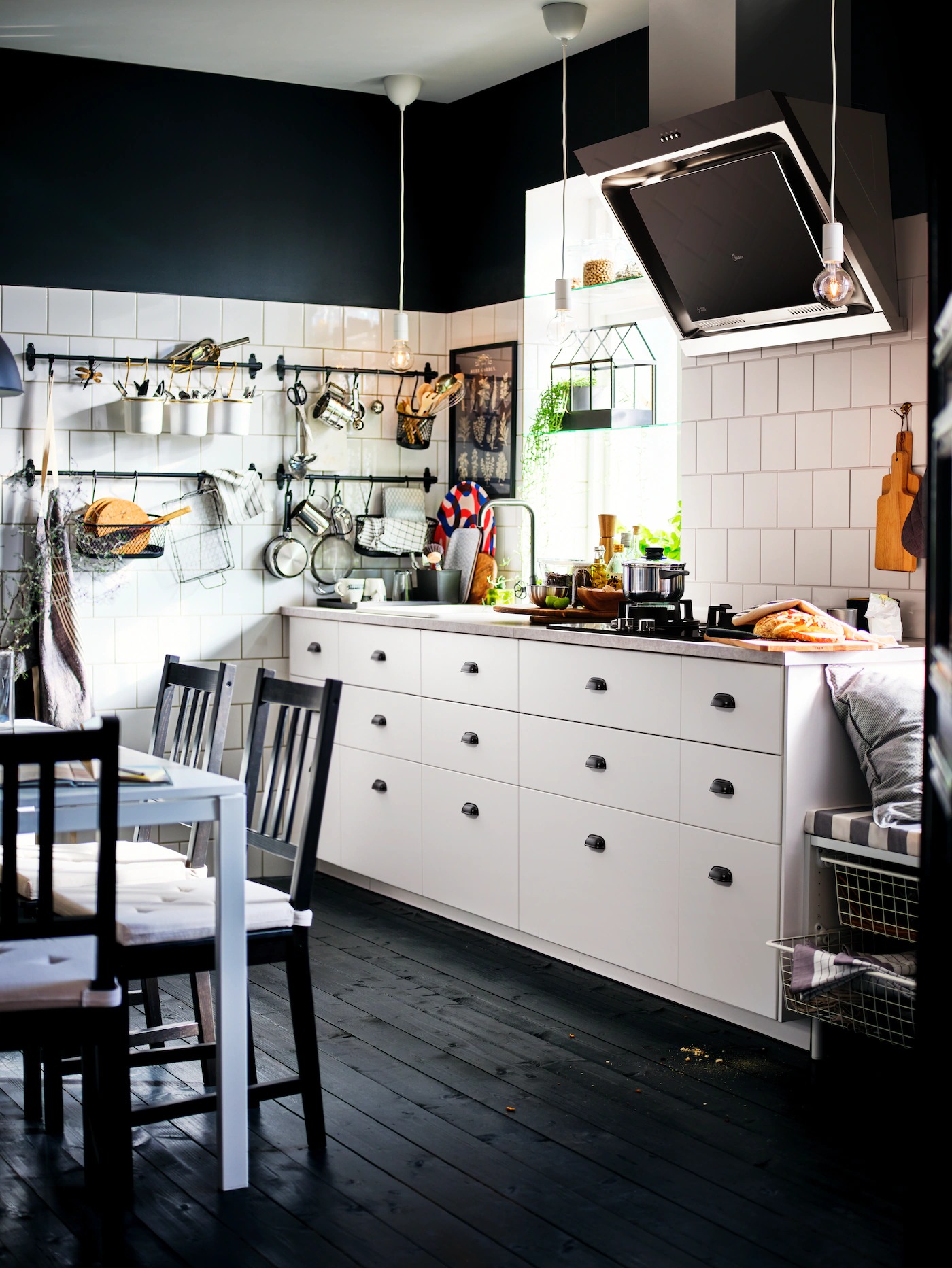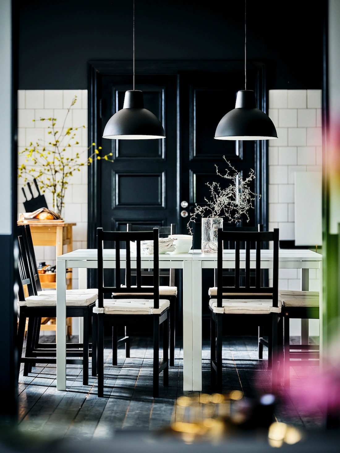 | Big gatherings on a budgetThis great value dining space can fit the whole family and then some: push together two MELLTORP tables, add in eight STEFAN chairs, and finish off with two SKURUP pendant lamps – all for under $3,000. |