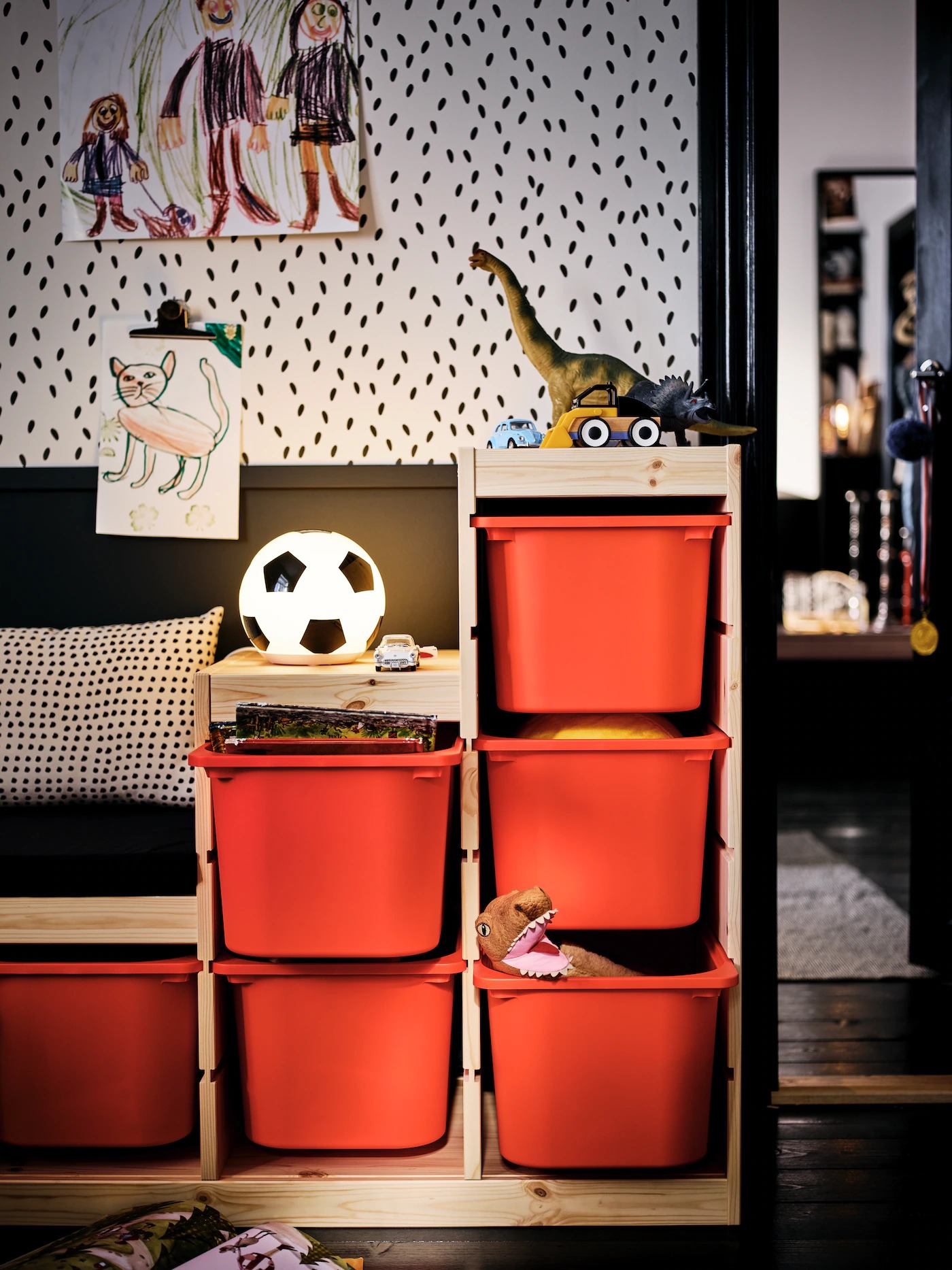 Even when he’s not out on the pitch, this little guy’s passion for the beautiful game is clear to see. And, as luck would have it, footballs are right at home with the apartment’s black and white style. His desk and toy storage were picked with the long-term in mind, designed for easy adjusting and extending as he grows.