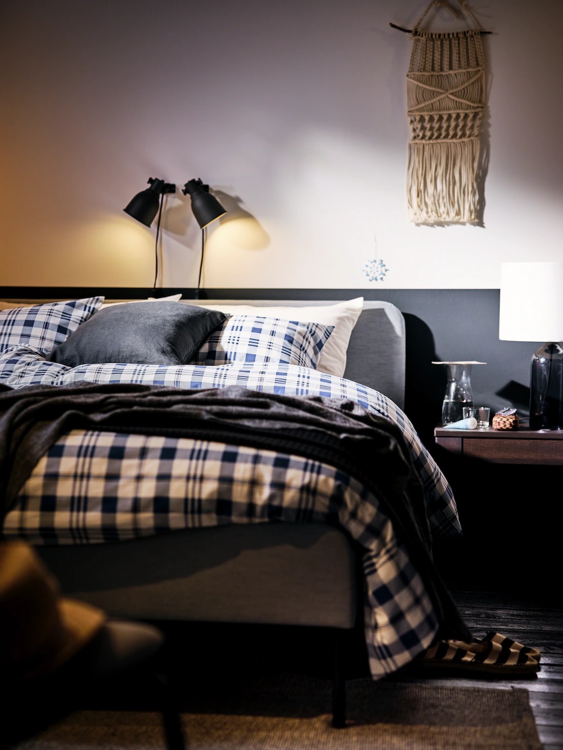 | More snoozing, less spending Nope, you’re not dreaming! Creating this cosy nest with a SLATTUM upholstered bed frame, SPIKVALLMO quilt cover and pillowcase set, plus two HEKTAR wall/clamp spotlights came in low price |