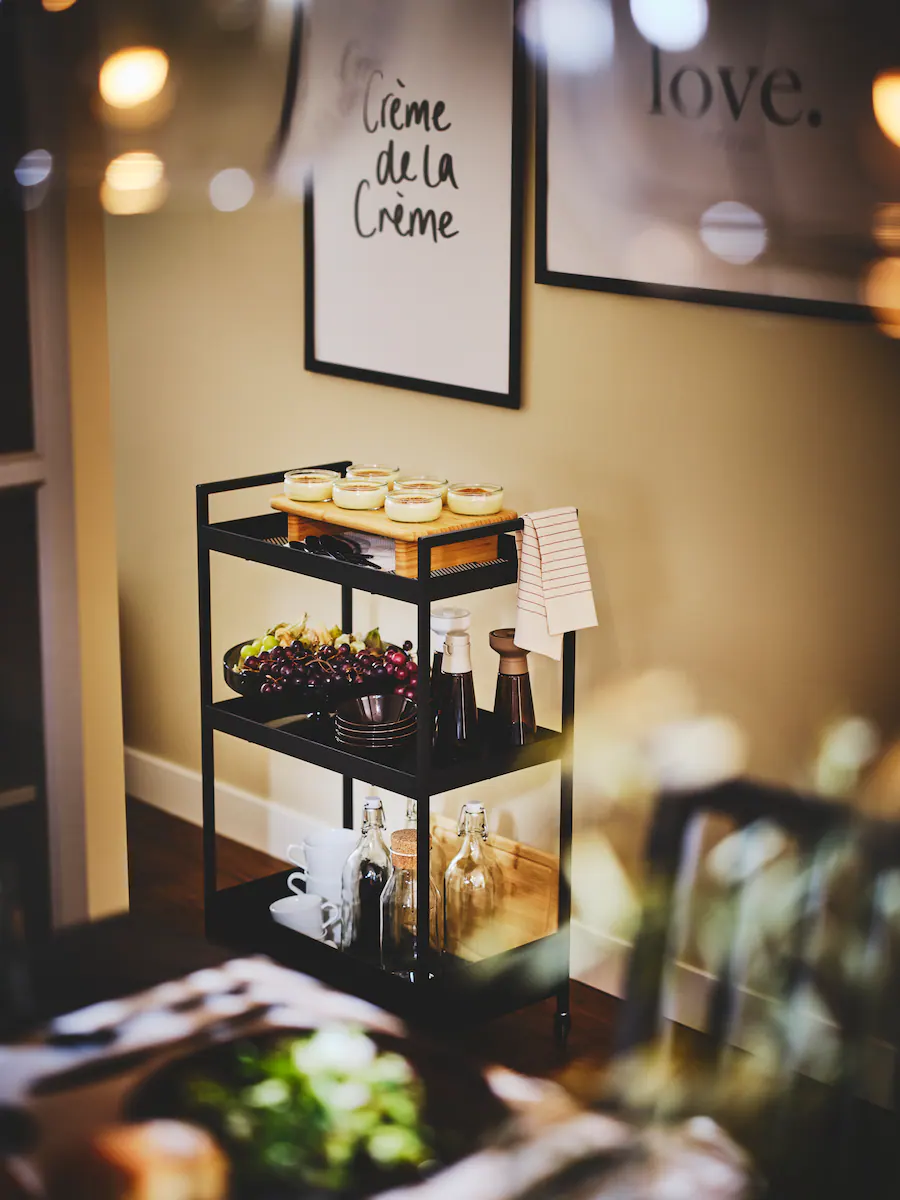 When two hands are not enough, a trolley acts as a helpful buddy at your dinner party. Using a trolley saves you several trips to the kitchen as you can bring out multiple dishes and dinnerware at the same time. When not hosting, your trolley can be used to store kitchenware.