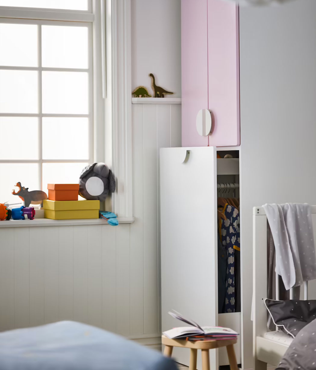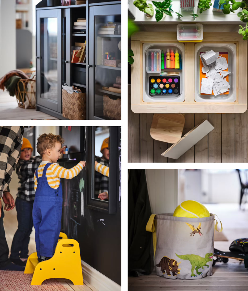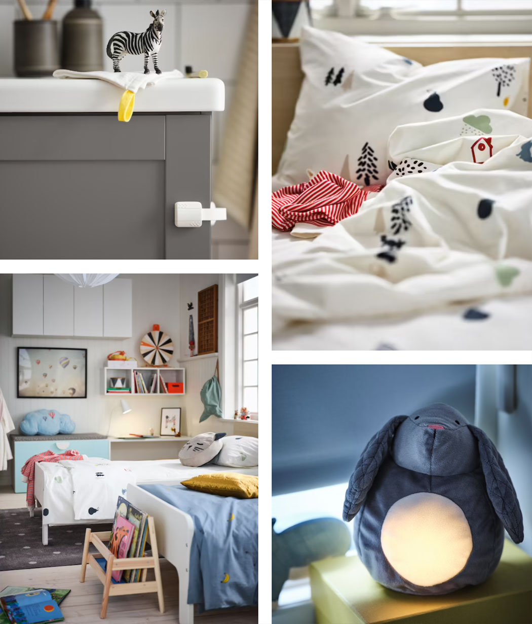 Keeping safety in mind is the most important part of living with children, according to Mia. In this home of three small children, she ensured that all large furniture and loose cables were secured to the wall. Safety latches were used to seal windows and to keep little fingers out of drawers and cabinets. “Parents can also feel secure knowing that all IKEA children’s products, like toys and bed linen, are thoroughly tested for safety and free of toxic chemicals,” Mia says.