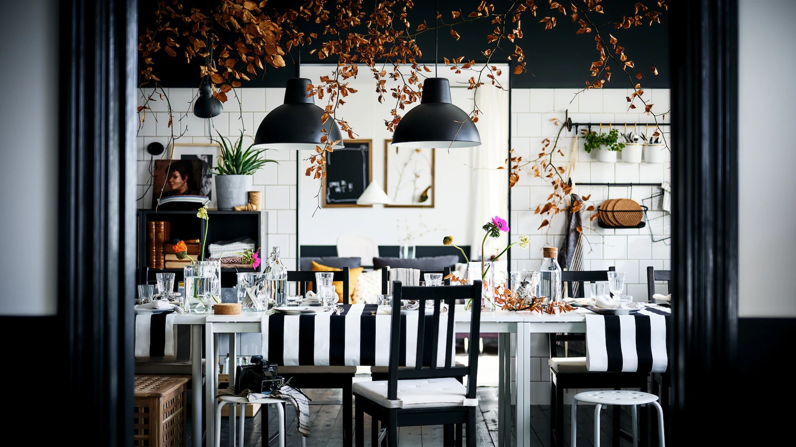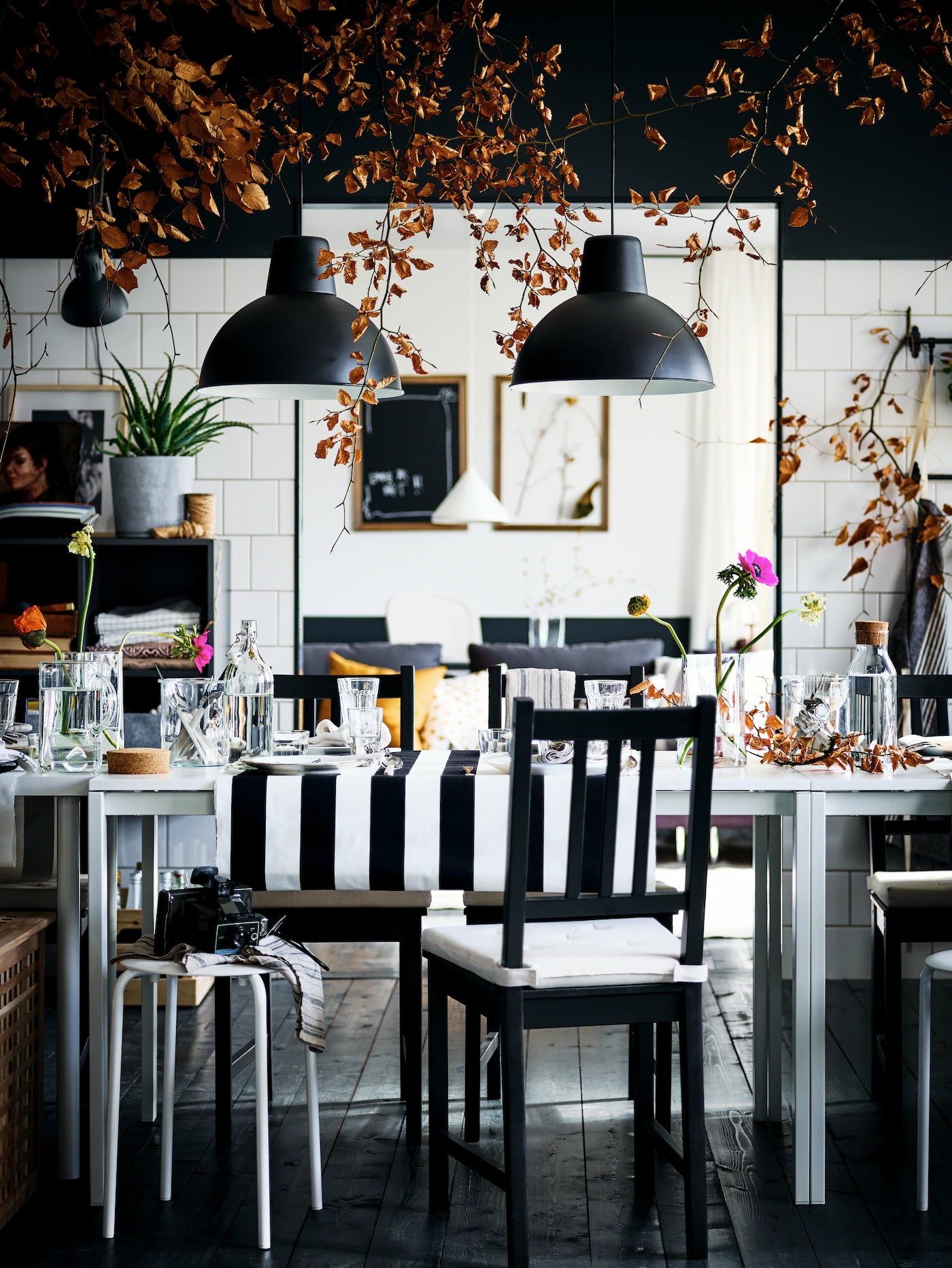 Tip 2: use basic dinnerware as your baseSimple white crockery and clear glassware will always serve you well, no matter the occasion. They're also easy to dress up in different ways, so your table can look different every time. Here, they fit right in with the bold, black and white tablecloth, as well as the vintage cutlery and accessories layered on top. |