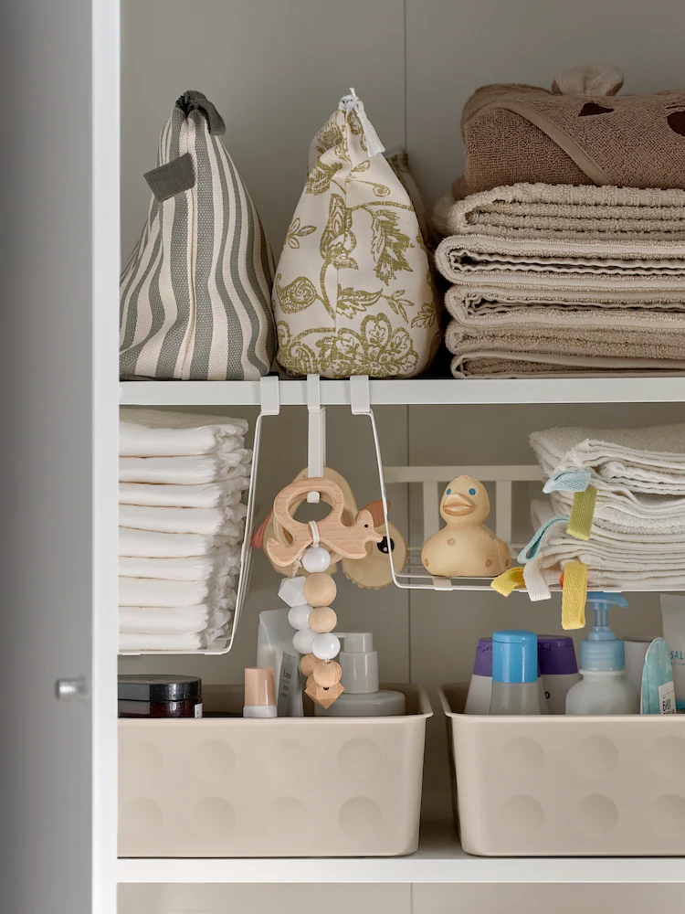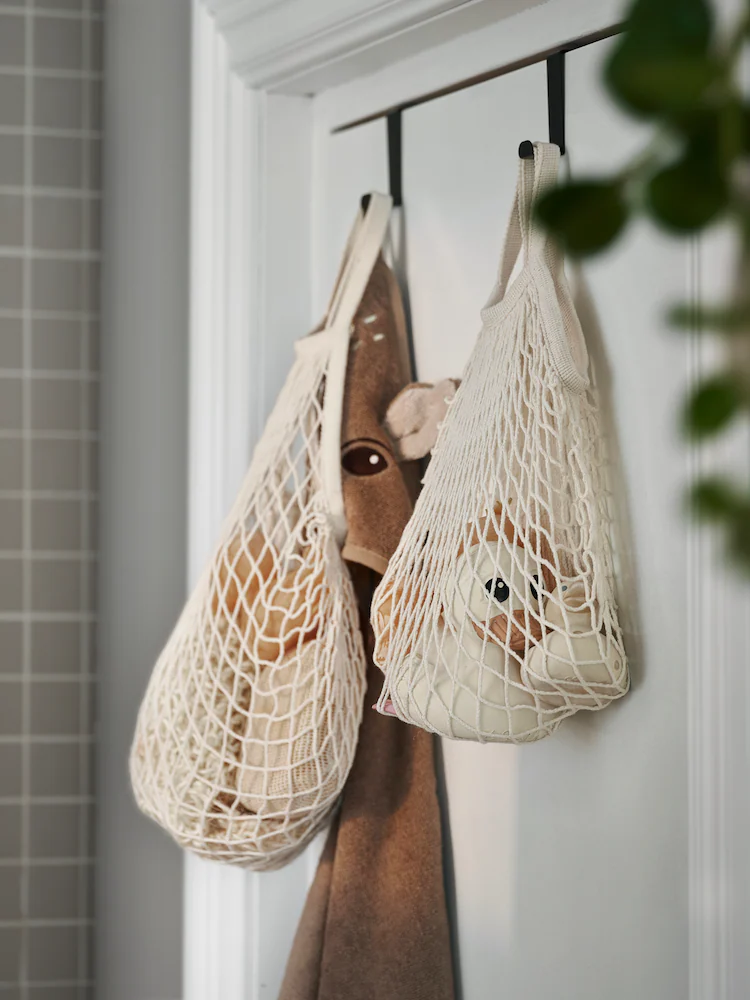 Hang these net storage bags from your bathroom door for added small-space storage and a fresh and free bathroom feel with clean modern style. You can see what’s in the bags and their net structure means no more clammy condensation. The whole thing feels clean and dry, and the kids will love it.