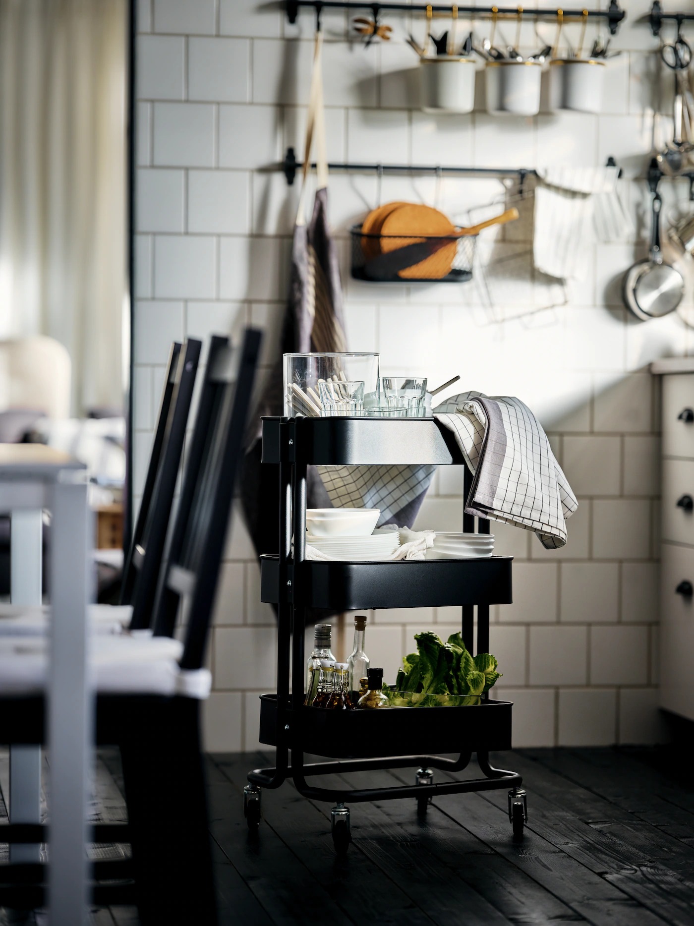 When every chair has been filled, and every inch of tabletop occupied, it’s time to call in for backup. Stackable stools take up almost no space in the corner of the room – stepping in from the sidelines when the next festive occasion arises. Meanwhile, a multilevel trolley holds all the extra condiments and cutlery, so that all those “hey, can you pass the –” requests go around the table, not over.