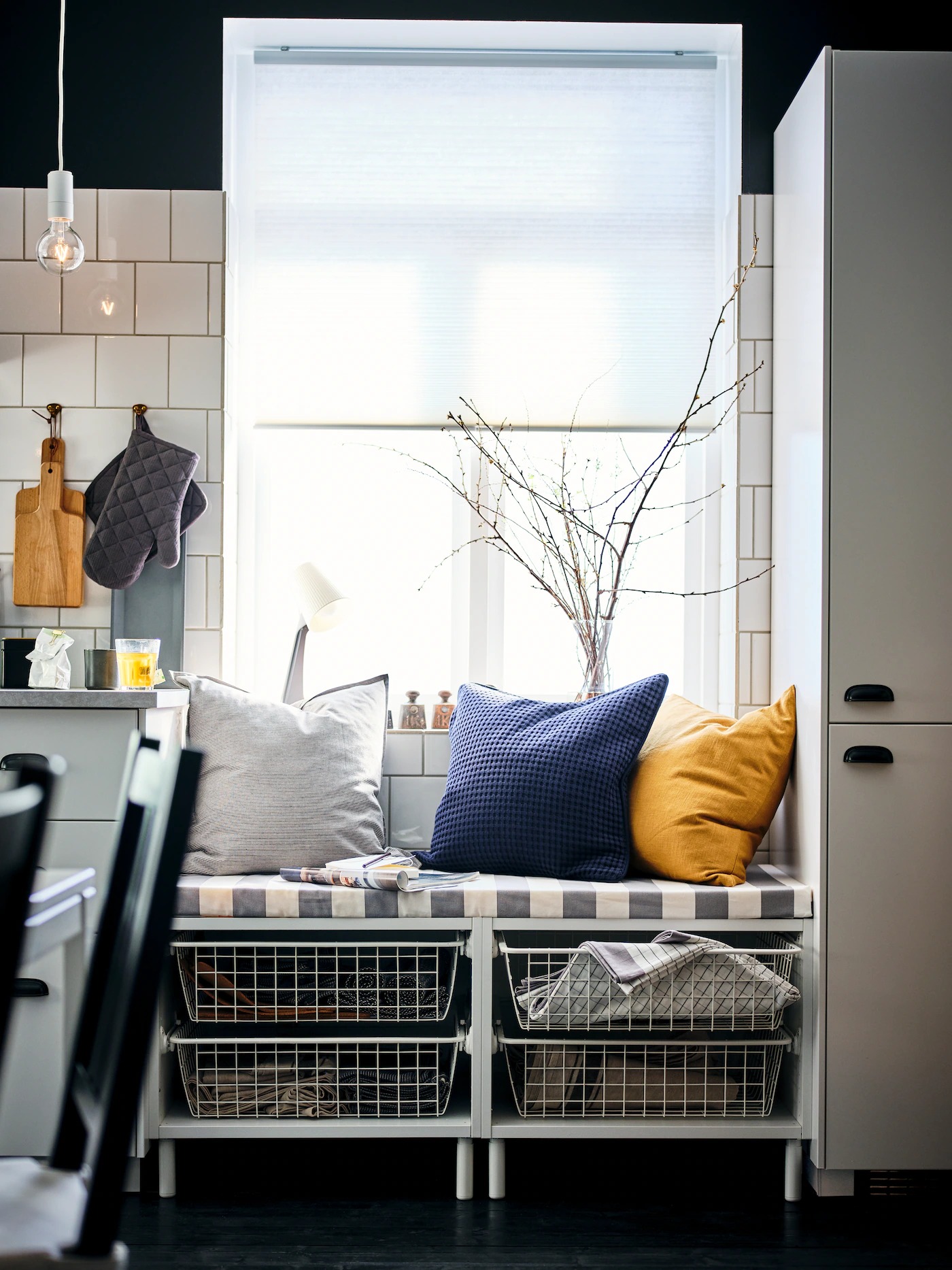 Take simple storage, flexible dining furniture and astonishingly low prices. Stir well to mix, and you have the makings of this multigenerational family’s combined kitchen and dining space. Finished off with a sunny window bench, music corner and the aromas of something scrumptious bubbling away, it’s a space where this family finds themselves lingering... long after the plates are cleared.
