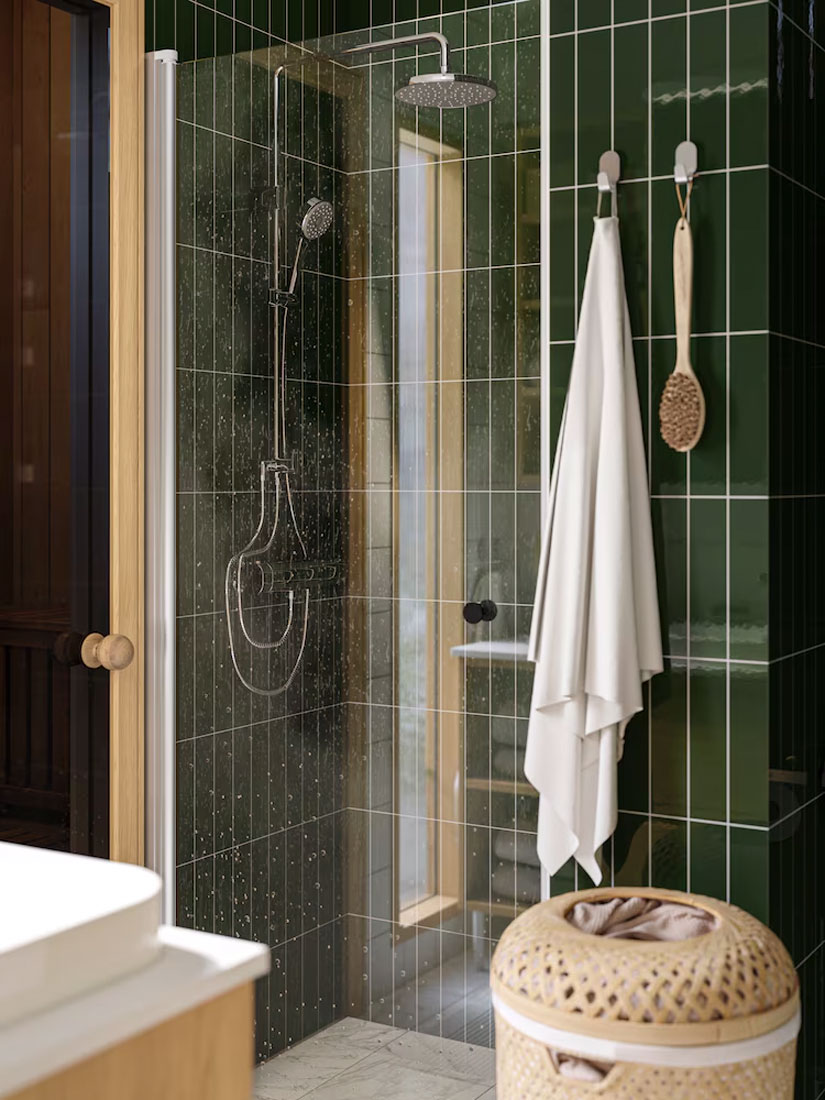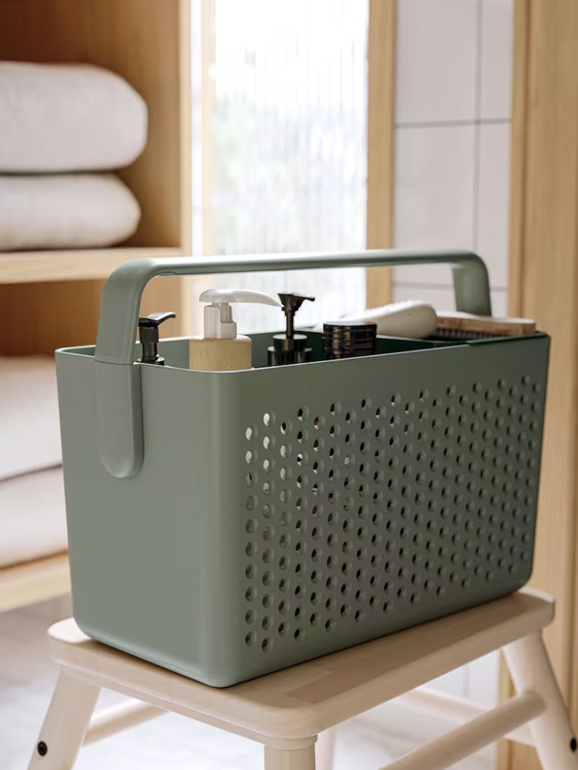 Keep your towels out of the way but conveniently close – stylish hooks next to the shower make them easy to reach after you’ve rinsed off. Your personal care products fit perfectly in a multi-purpose storage basket that keep everything in place. Simply use the handle to carry it wherever you want it.