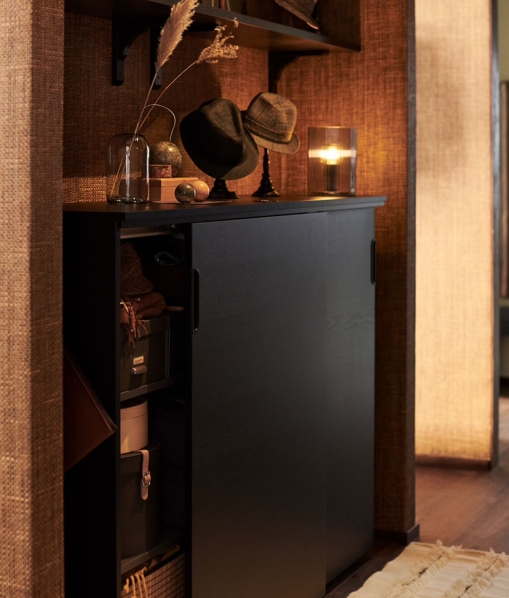 If fashion is your thing, why hide it behind wardrobe doors? In this apartment, the hallway becomes the home of a curated collection of hats and accessories - not only a statement-making welcome for visitors, but grab-and-go smartness for stepping out of the house in style. Learn more about using storage to showcase your personality with interior designer Chiara Effroi Lutteri.
