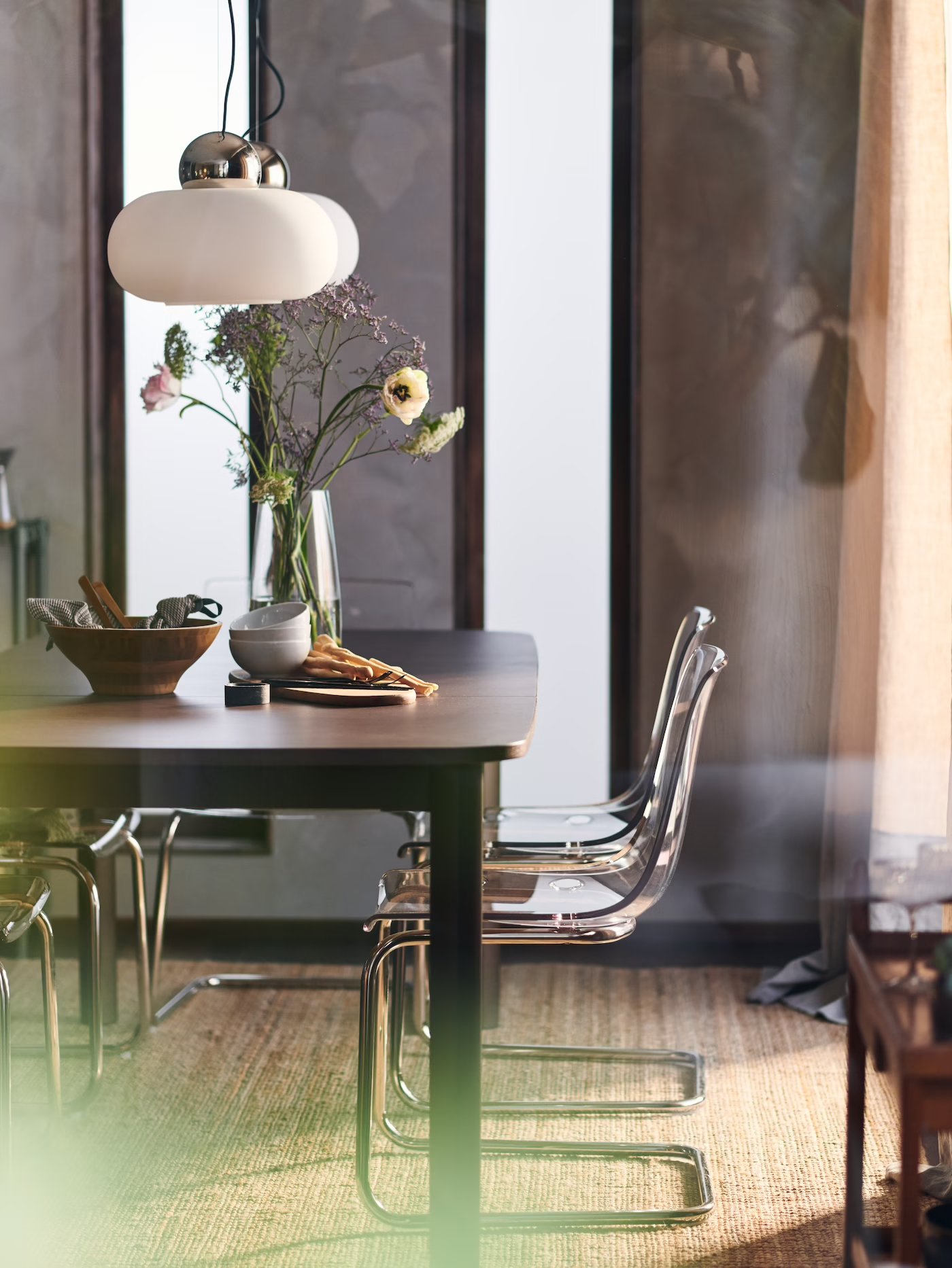 He may live solo, but this is a home where friends and family are always welcome. The dining area is the apartment's hosting hub, with an extendable table that can accommodate all the way up to ten people.