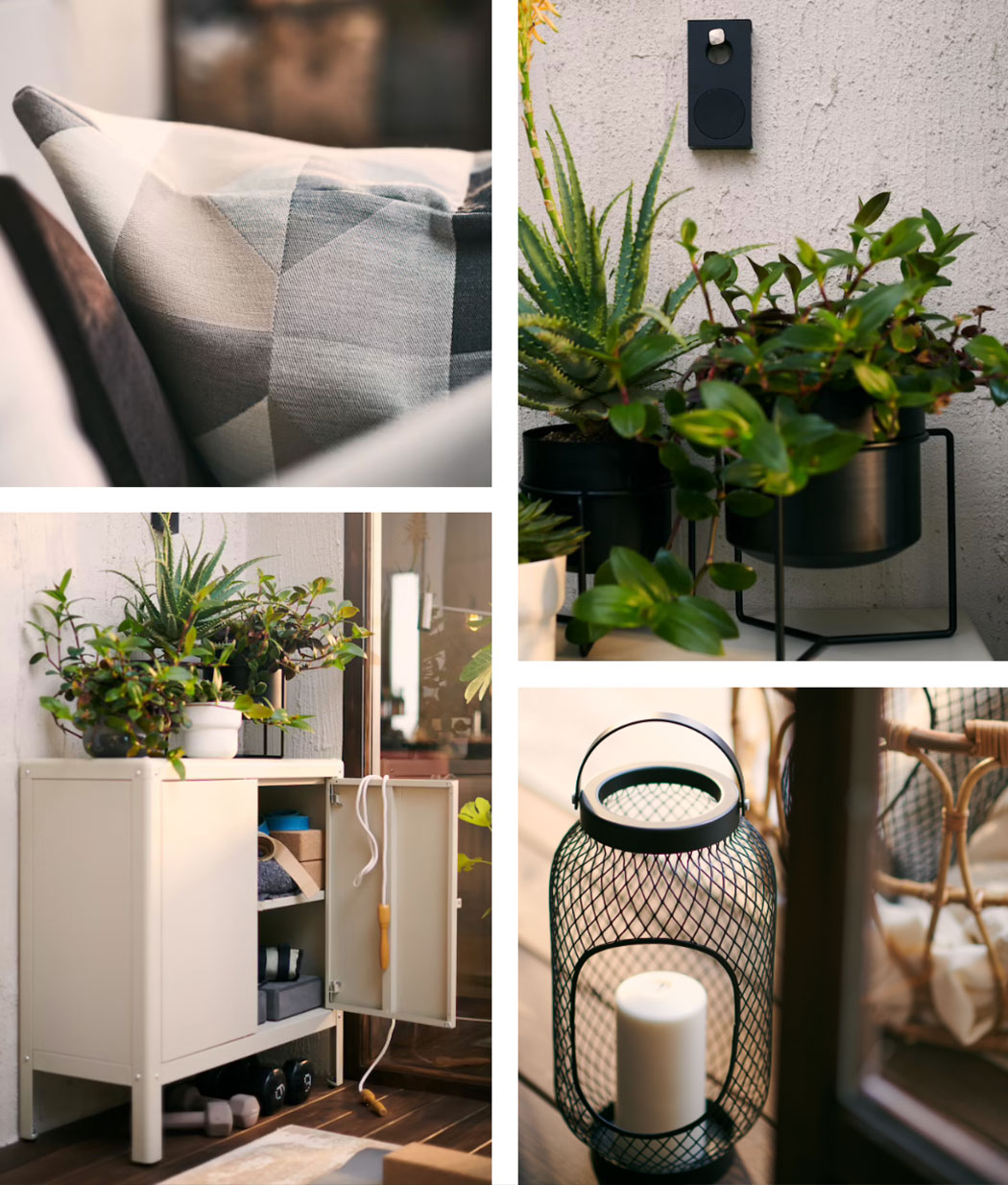 A space to roll out your yoga mat in the morning, or hang out with a friend after work: this balcony delivers on both. Lush greenery, lanterns, and a seriously comfy chair all set the mood for some well-deserved time out.