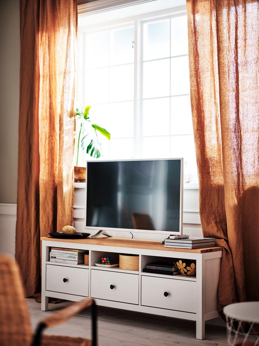 Finding an activity everyone enjoys can be a great way to create a family tradition. This living room has been set up for movie nights. Multipurpose tray tables are ideal for snacks, snuggly blankets are at the ready, and a film can either be streamed or a DVD selected from the drawers of the TV bench.