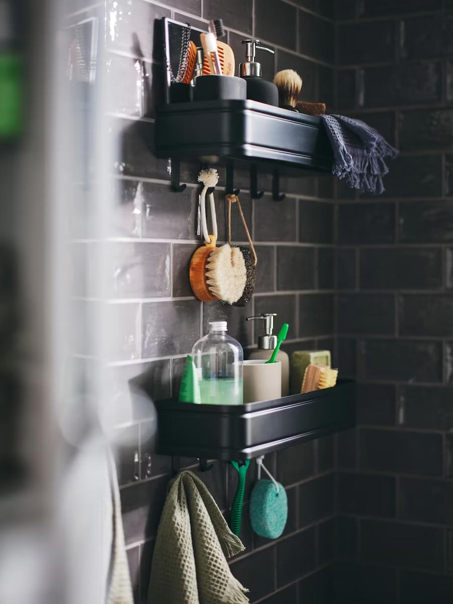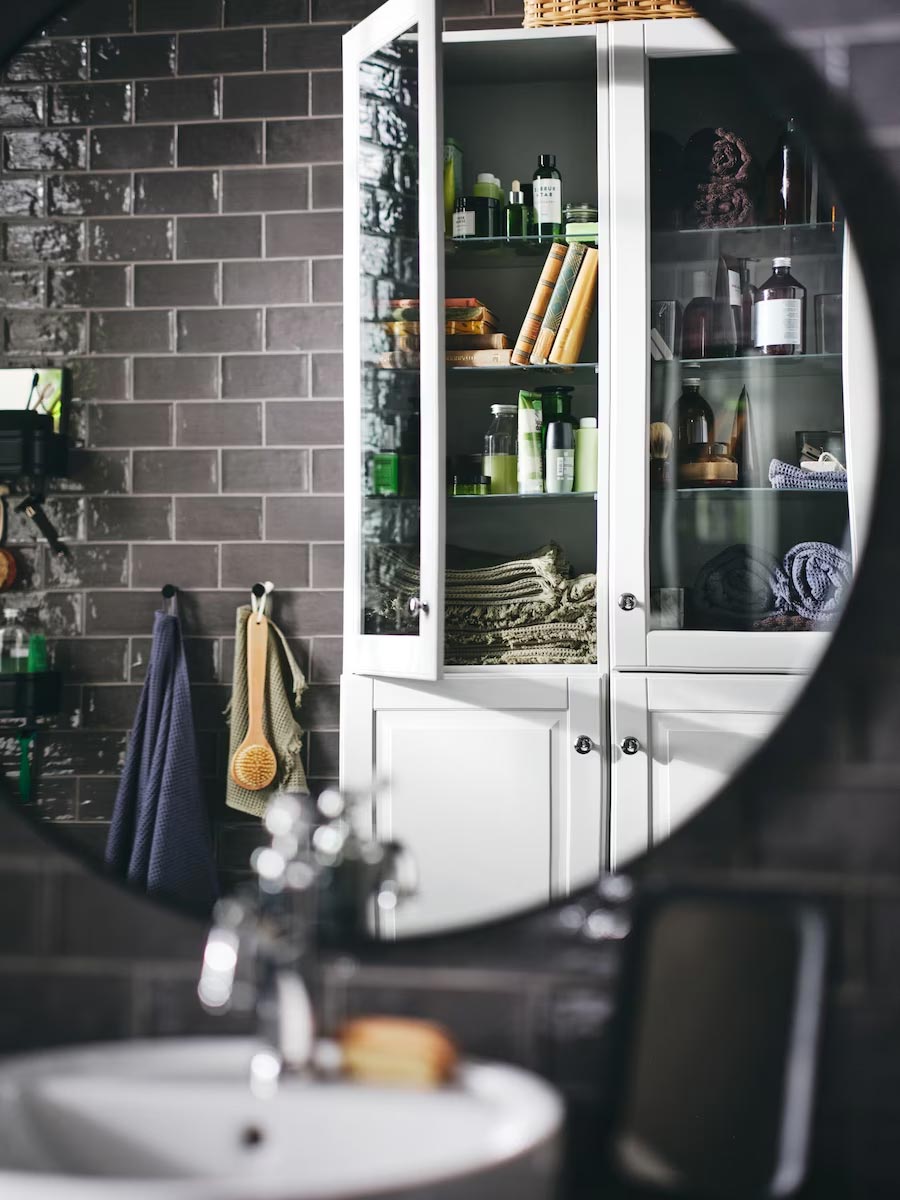A bathroom for a clean routineWith just one bathroom for the two of them, they’ve also split the storage to keep things organised and private. Each has their own shower caddy for all their daily products, while towels and other personal care items find a home in a glassfronted cabinet split perfectly down the middle. |