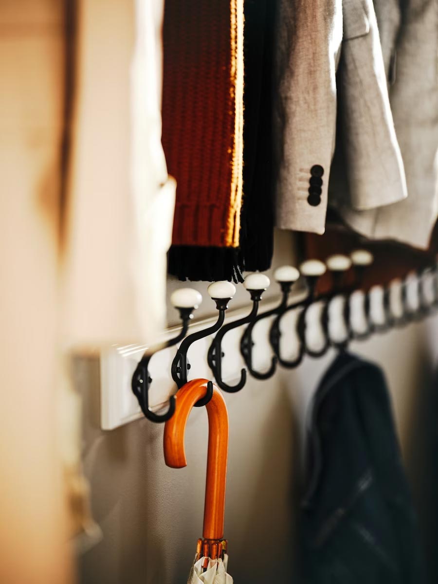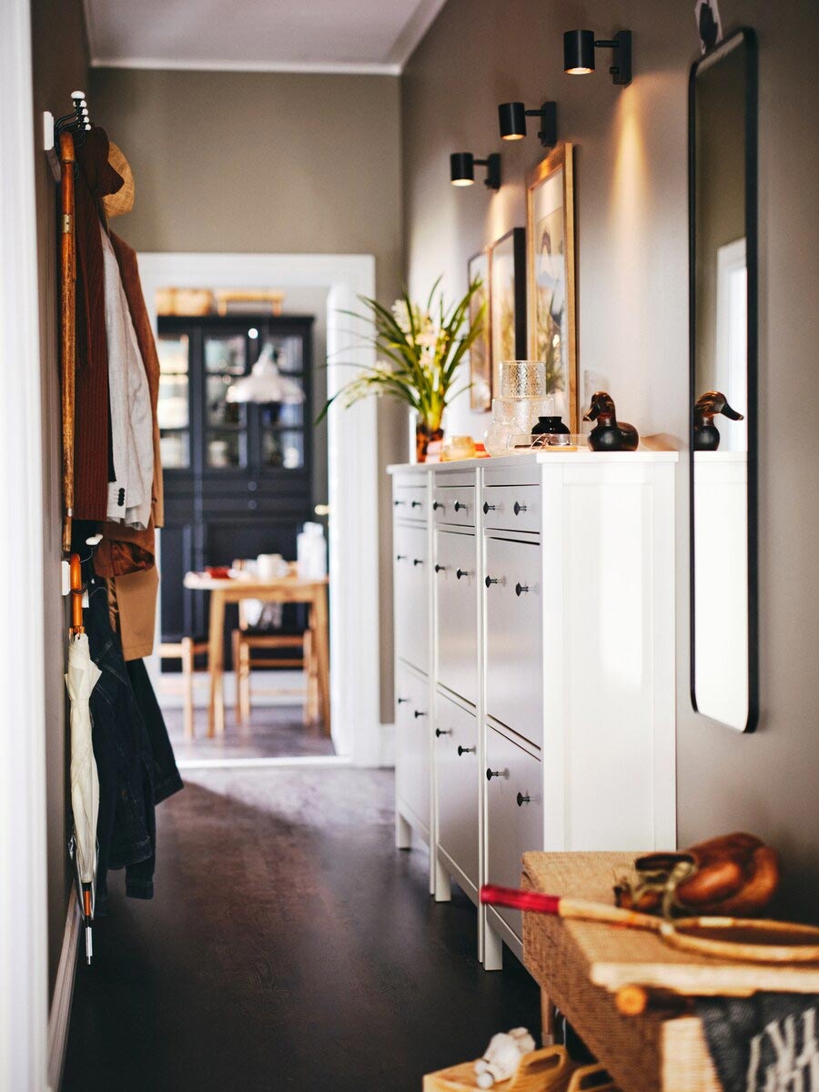 Easy access hallway storageA long, narrow space, their hallway houses all the storage they both need to head out into the world. Shoe cabinets keep all their boots and trainers easily accessible, while hooks take care of umbrellas, walking sticks and seasonal outerwear. It all goes to show that by dividing, you really can conquer. |