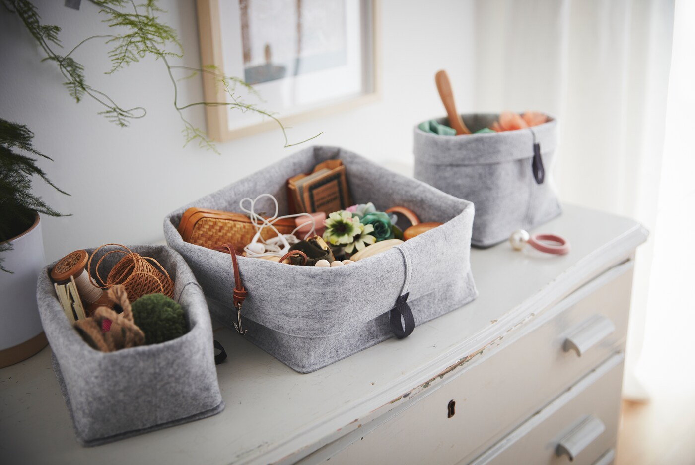 It’s the small details that complete the best outfits. So take good care of them. Handy baskets like these help you keep track of any and all. (And they don’t just look good. They’re made from ninety per cent recycled material, too.)
