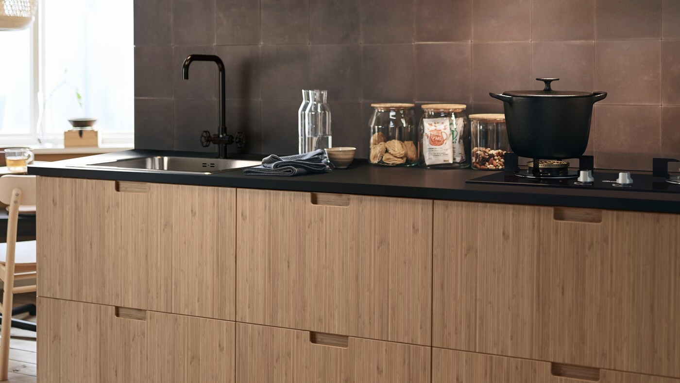 It’s strong, durable and beautiful. It’s also quick and easy to grow in a wide range of climates, and requires little fertilising or irrigation. From chopping boards to kitchen fronts, this kitchen is full of bamboo products with surprisingly low price tags.